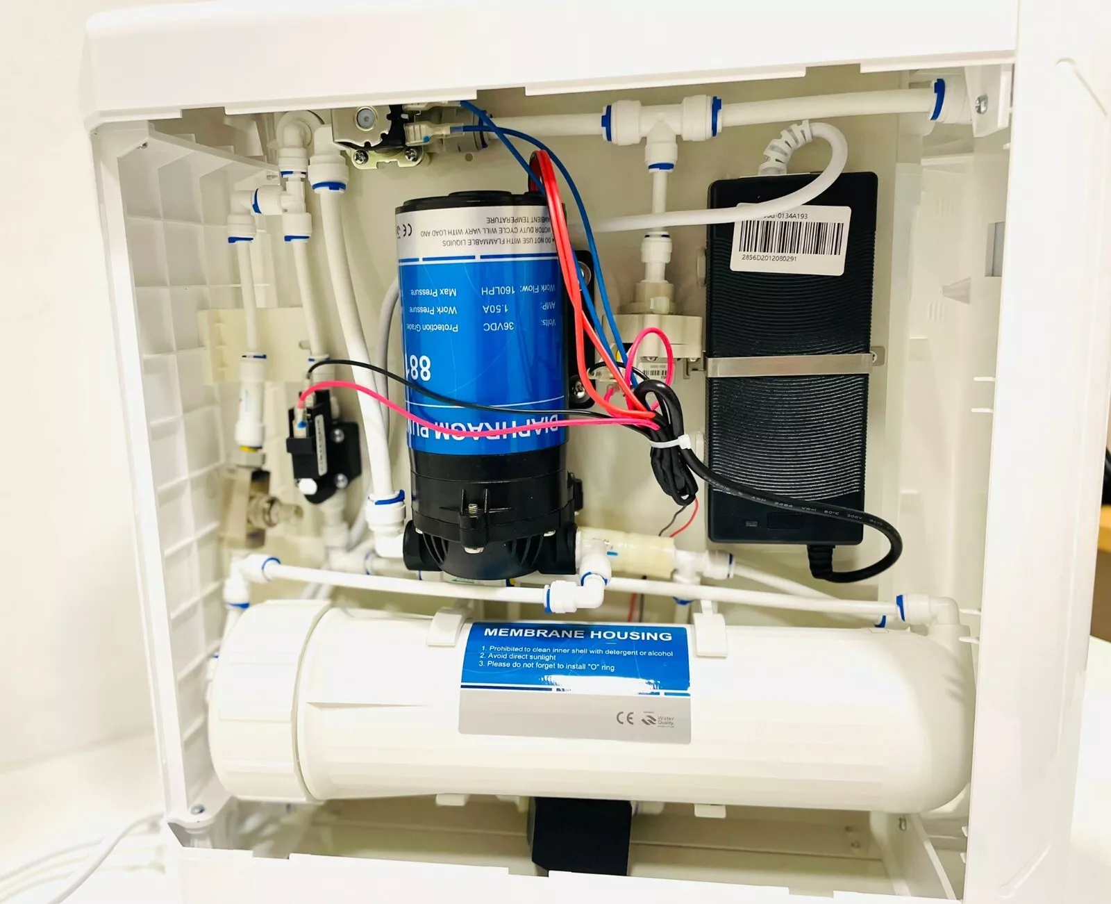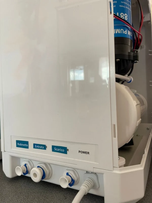 Il depuratore è fornito di 1 membrana che produce sino a 400 GPD, dotato di un trasformatore di nuova generazione ad alto rendimento a bassa tensione di calore.