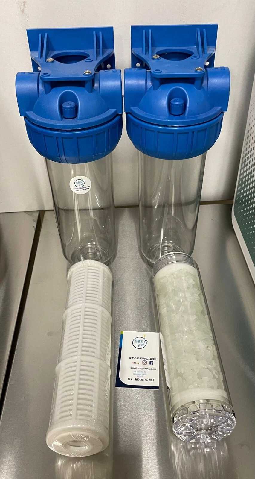 FILTRO ACQUA DOPPIO SX ADDOLCITORE ANTICALCARE E IMPURITA’ 3/4 ” POLIFOSFATO